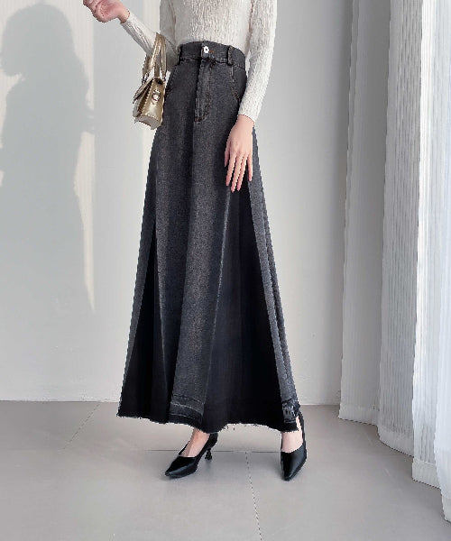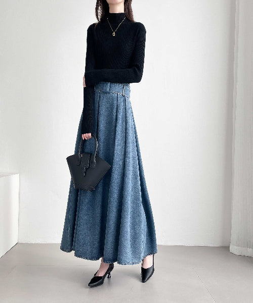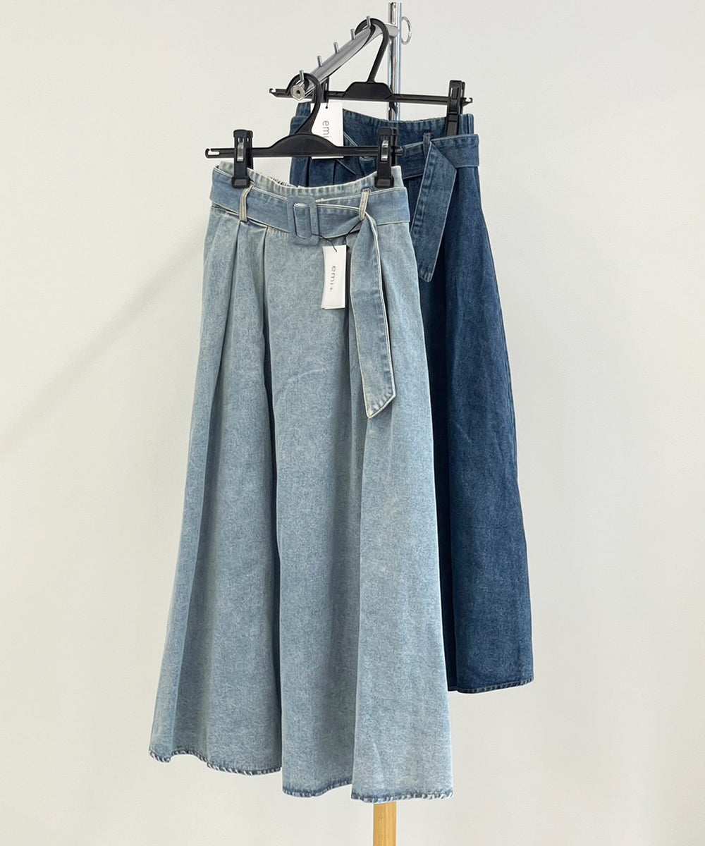 【20年デニム】配色タックフレアデニムスカート