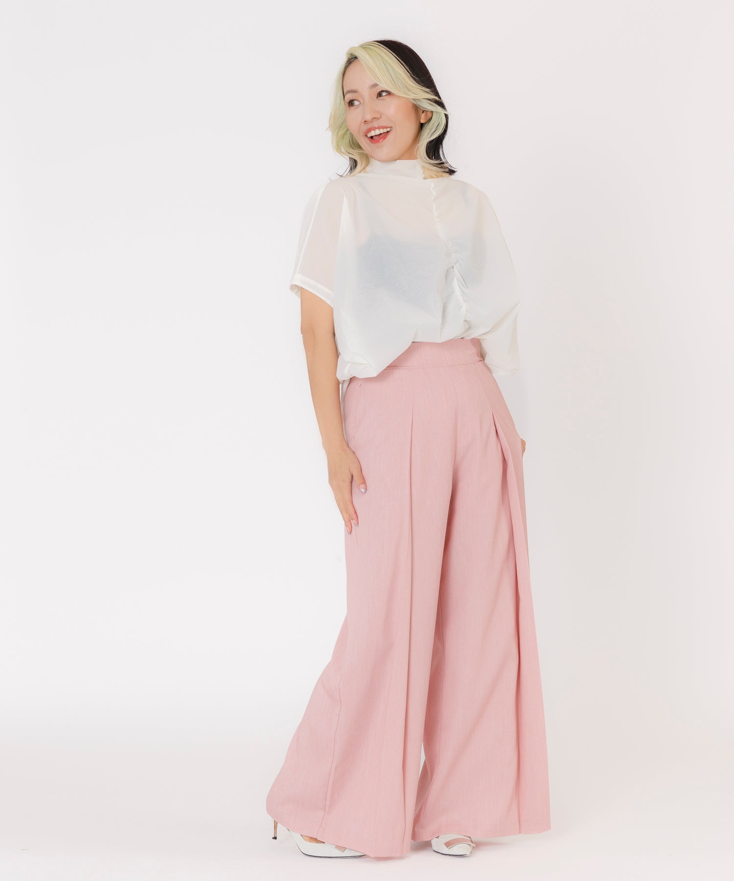 落ち感のあるストレートワイドシルエットで、ボディラインをカバーしつつ細見えスタイルアップも叶うアイテム