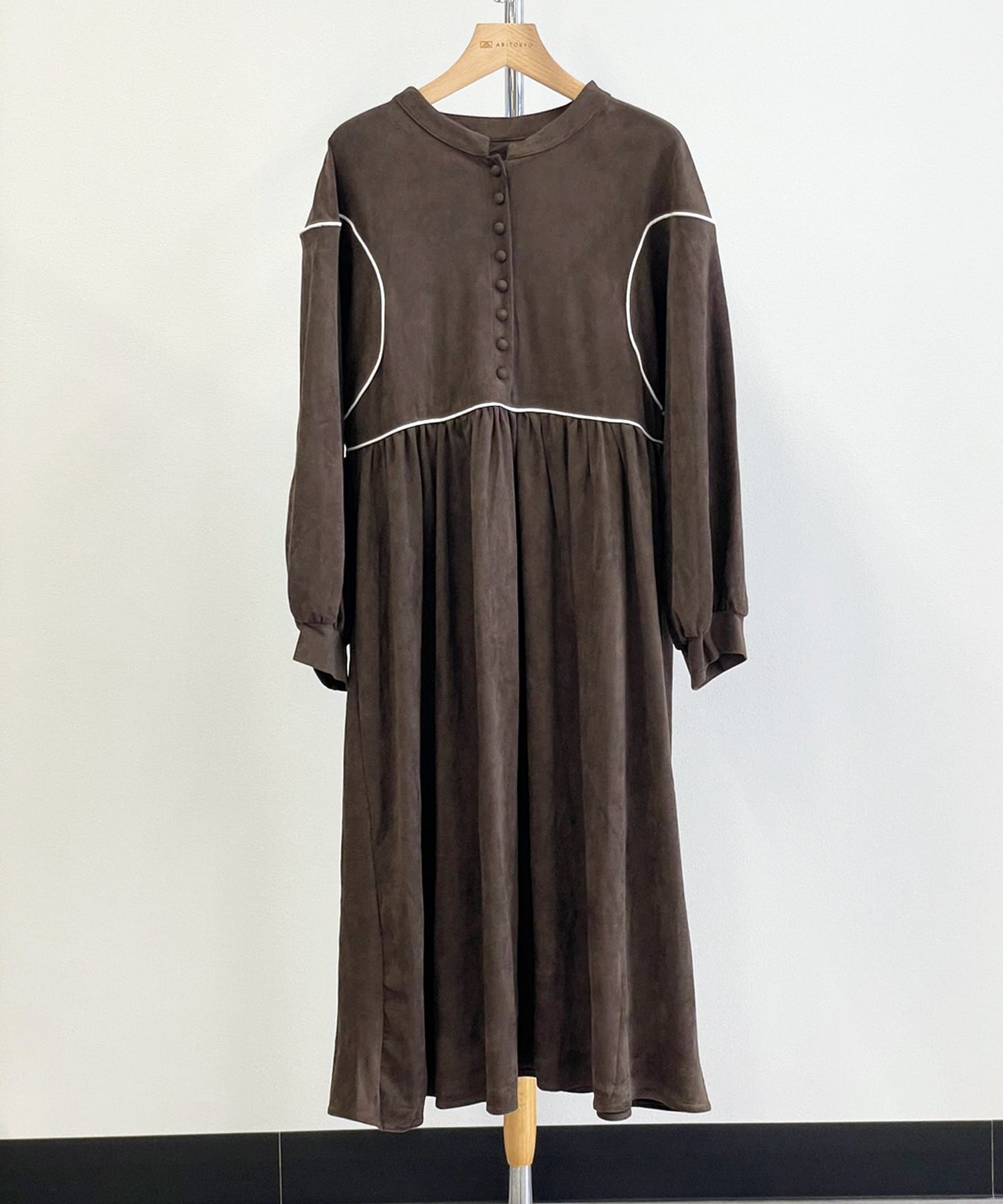 スウェード調パイピングワンピース