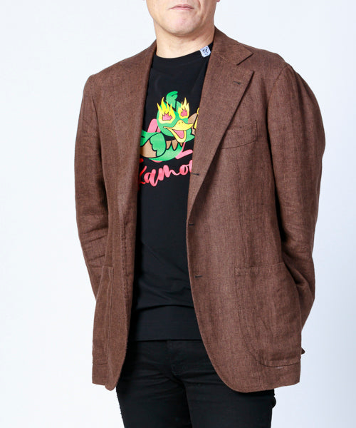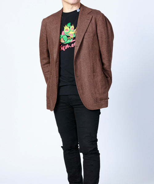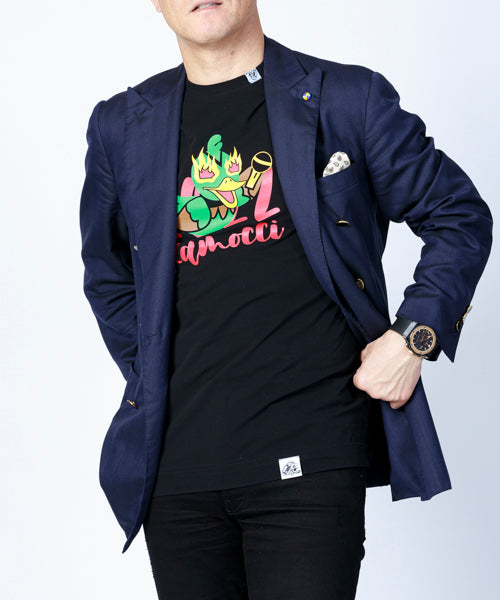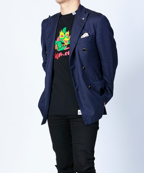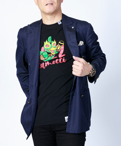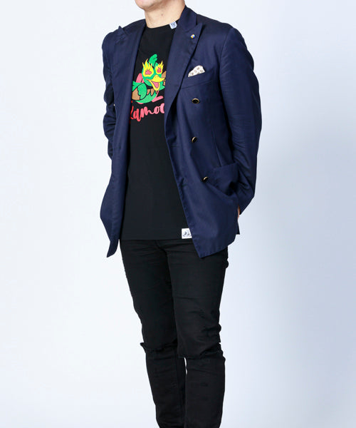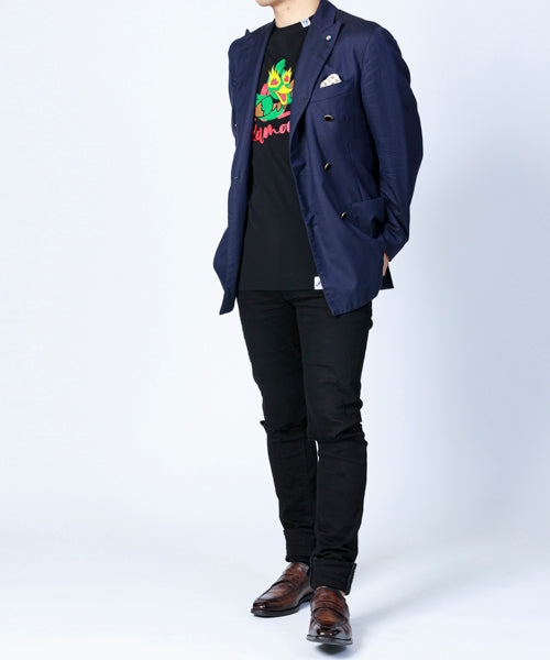 アームホールを通常のTシャツよりカットしスッキリさせることで、ジャケットインした際のごわつきを改善!