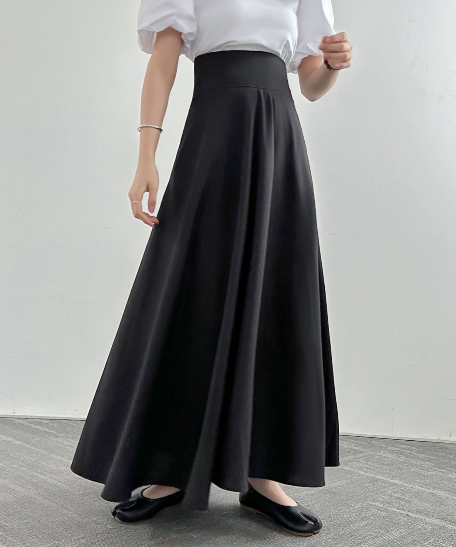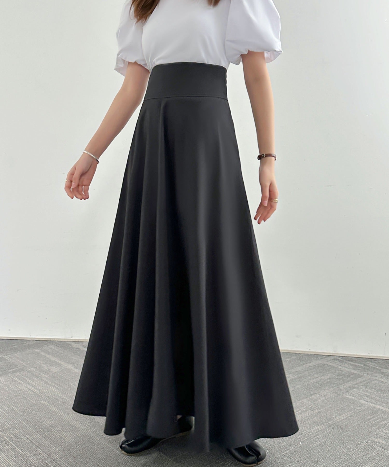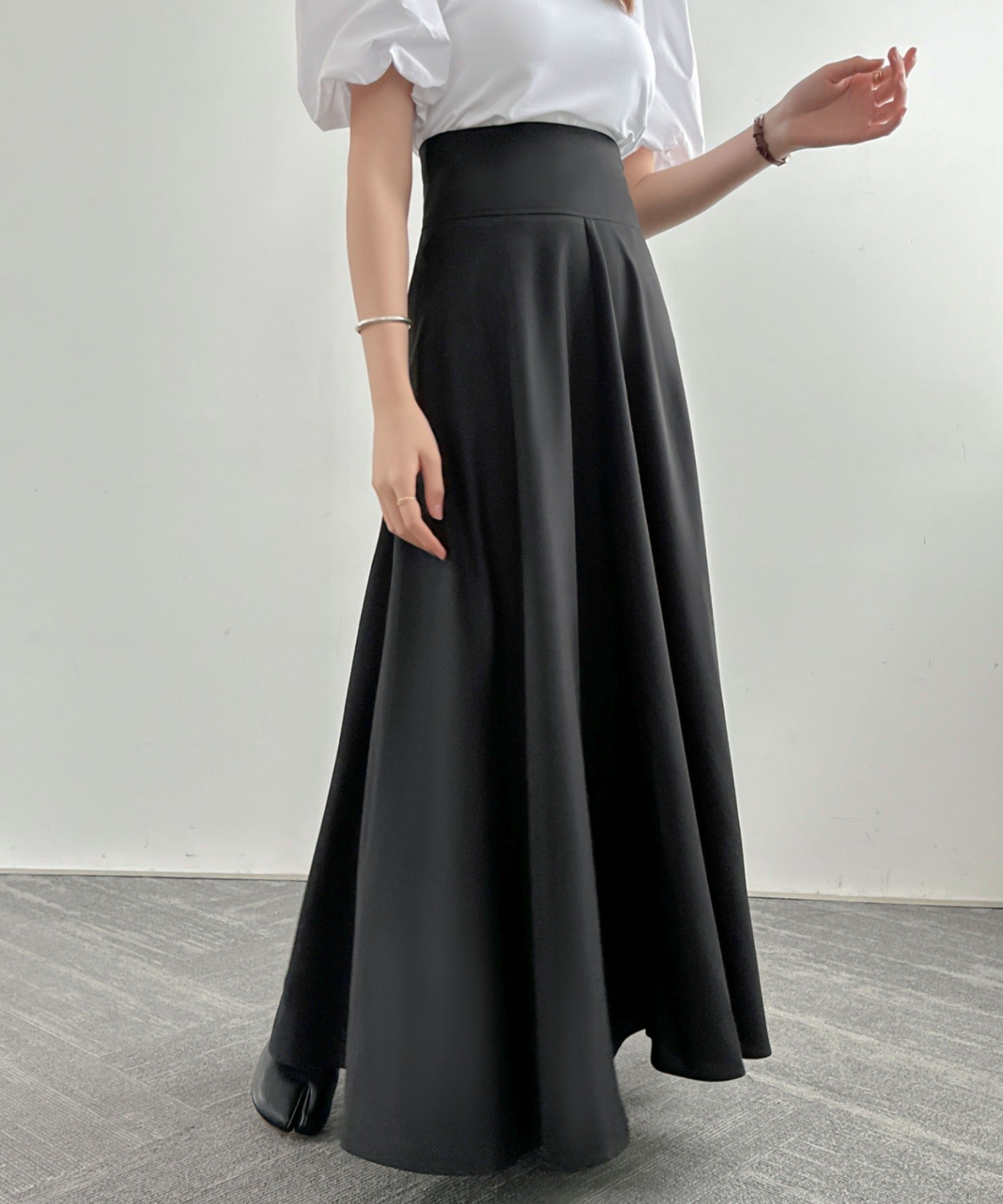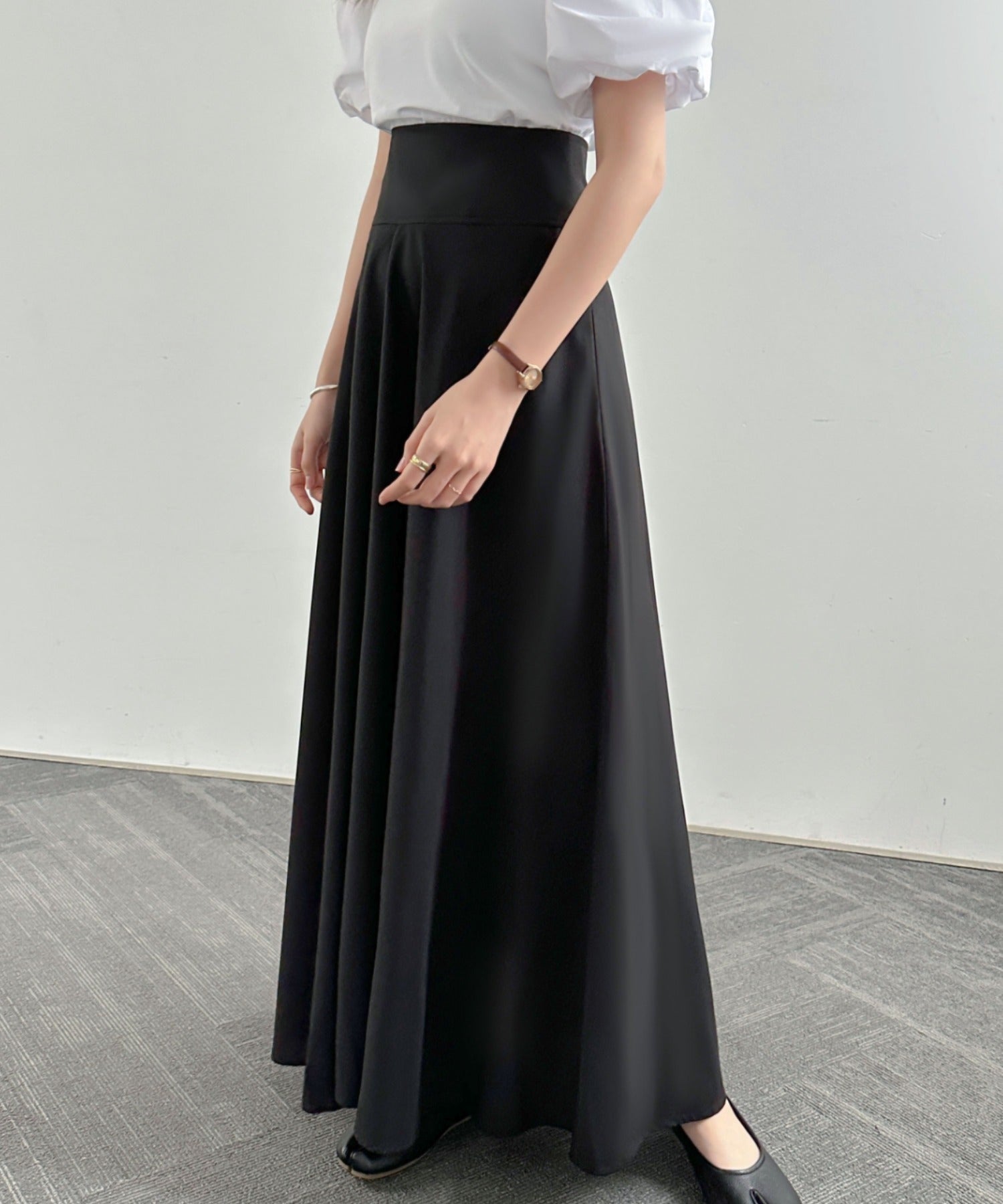 ハイウエストマキシ丈フレアロングスカート
