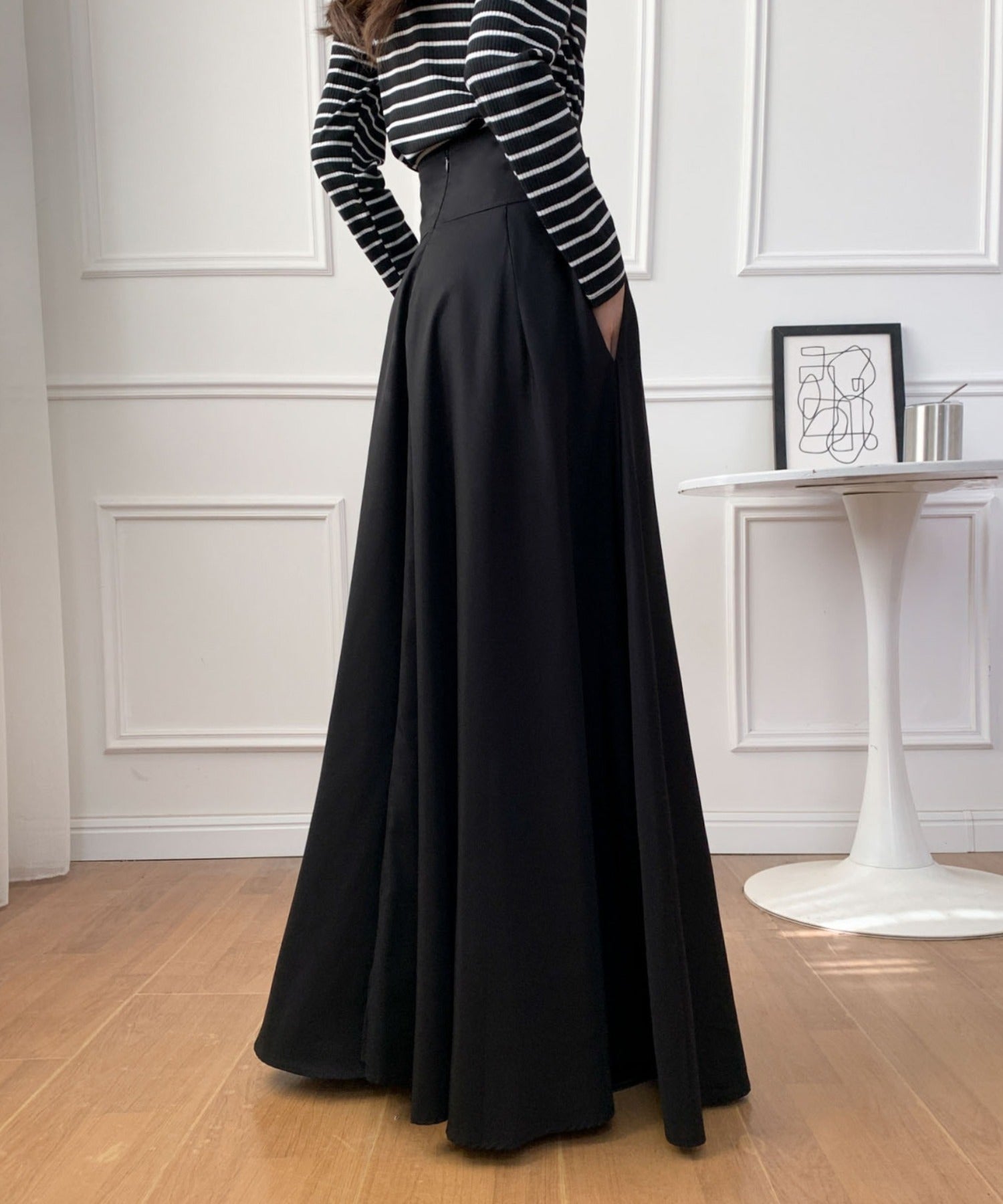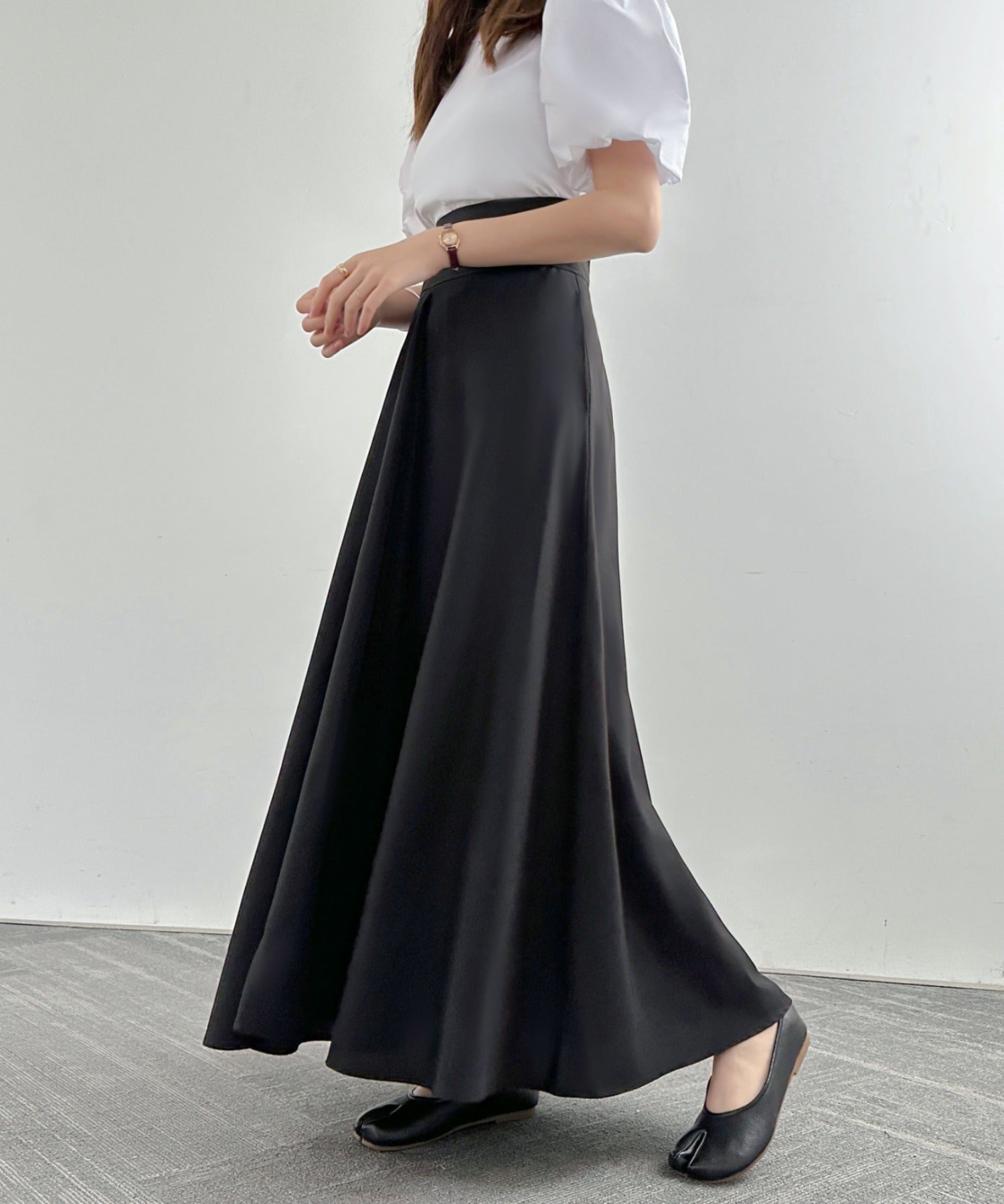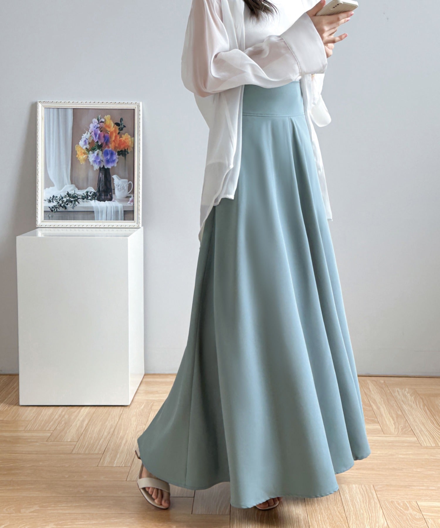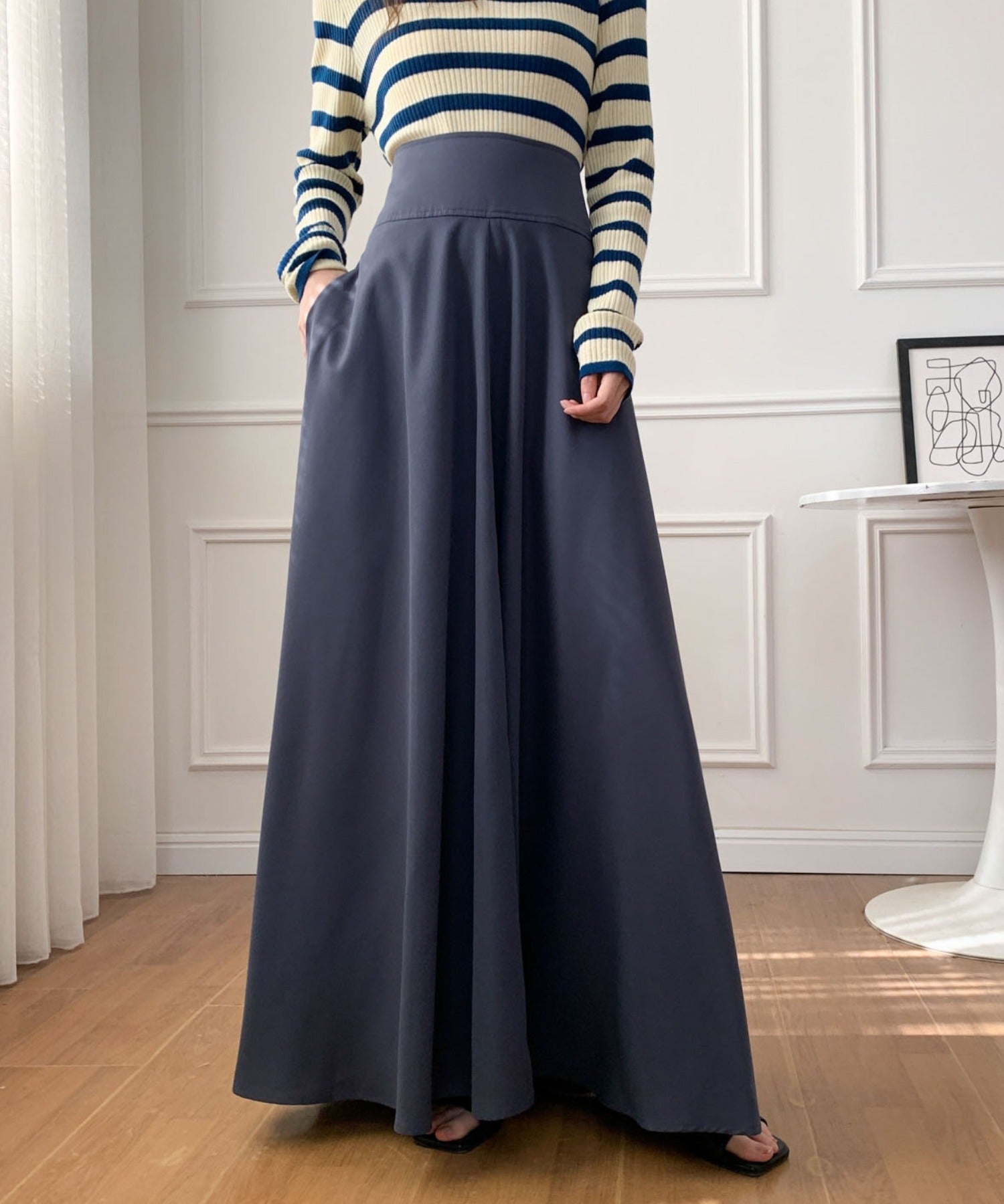 ハイウエストマキシ丈フレアロングスカート