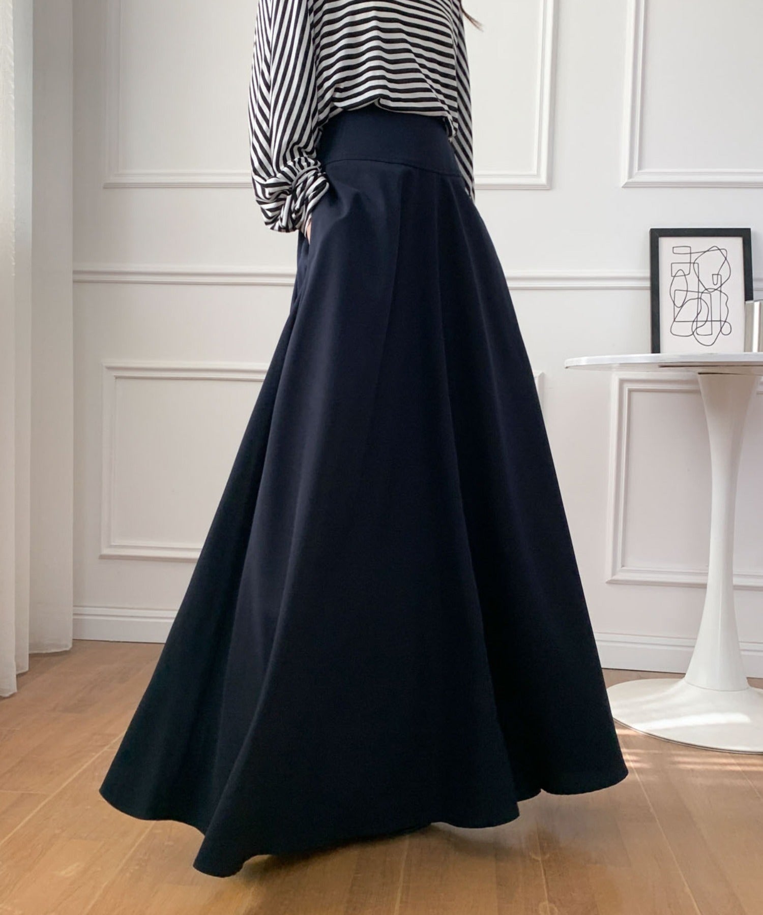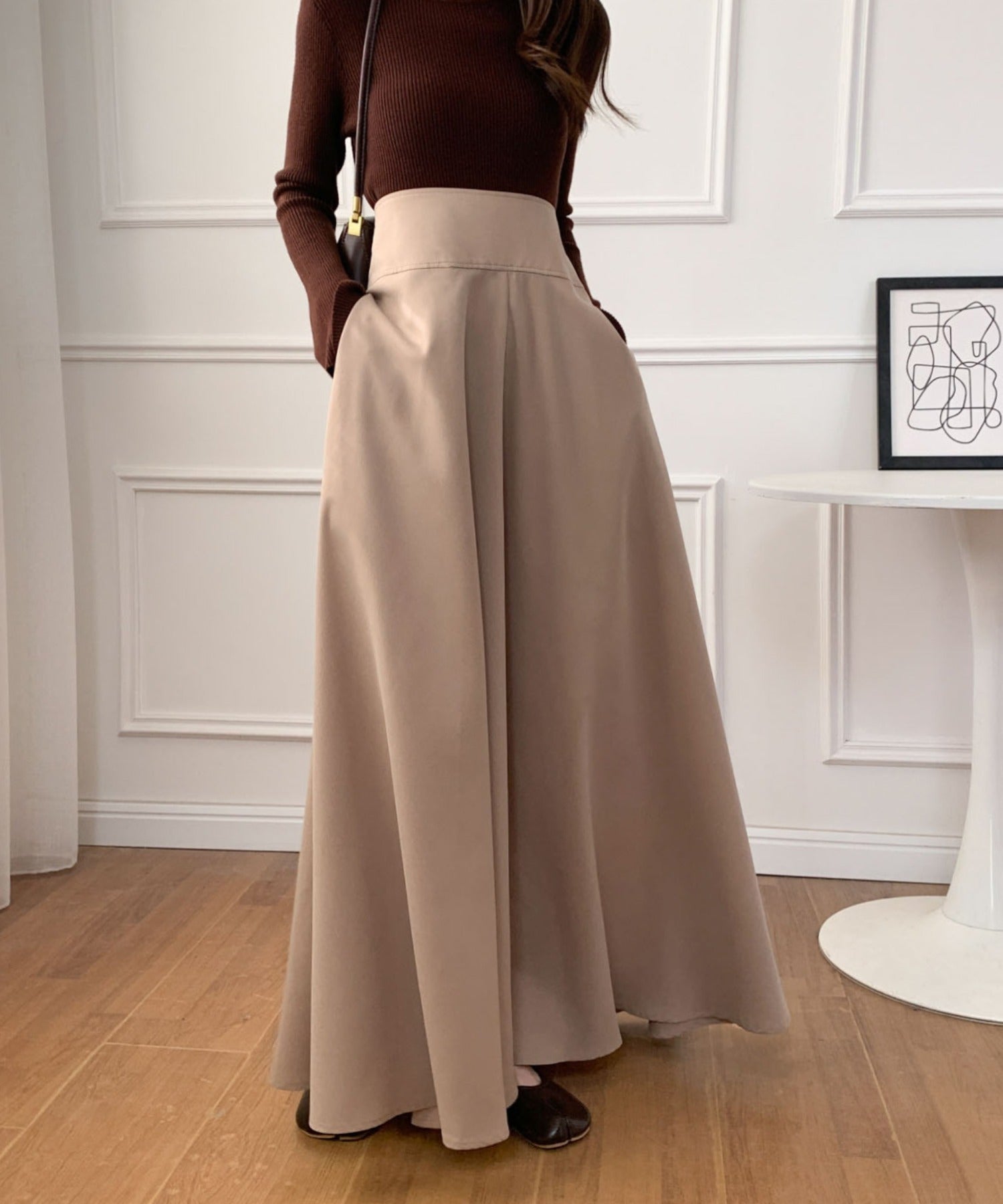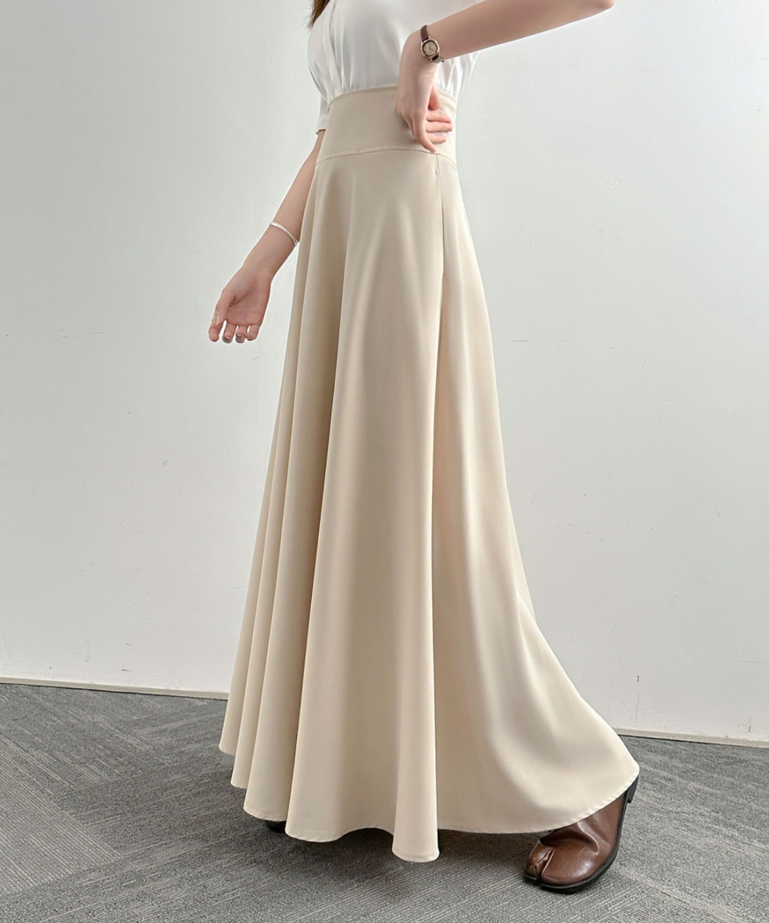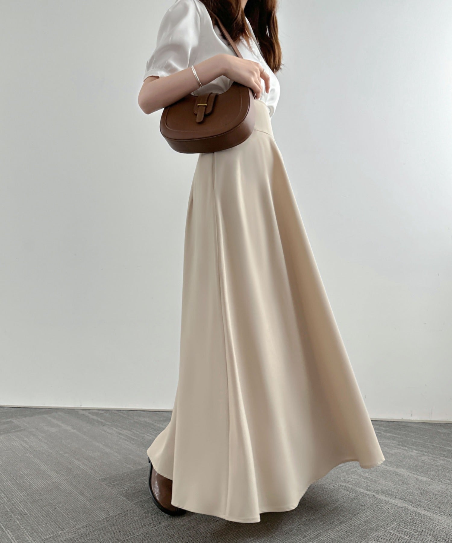 ハイウエストマキシ丈フレアロングスカート
