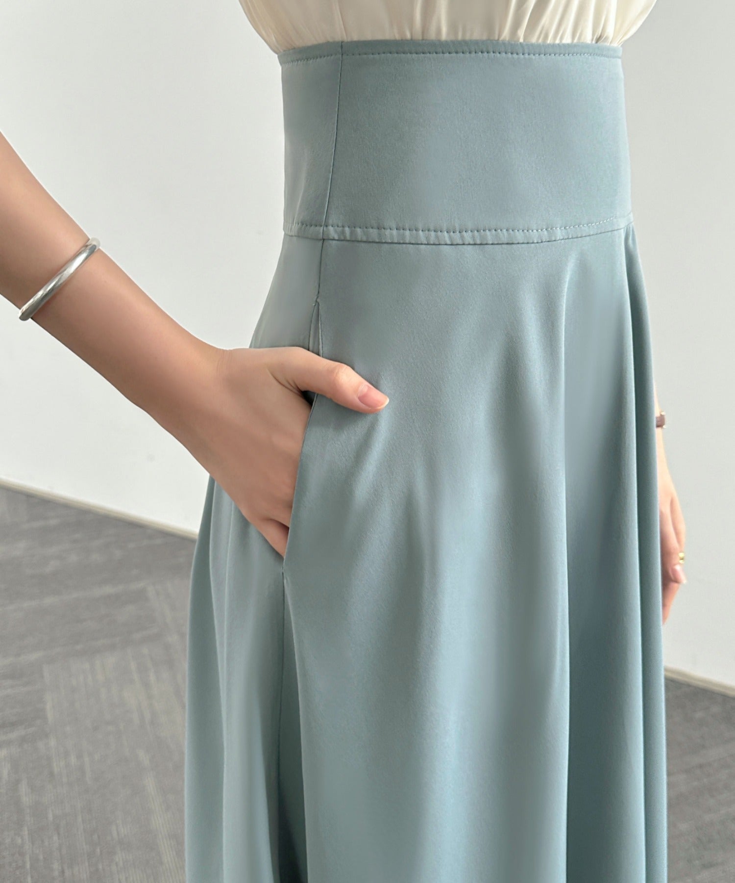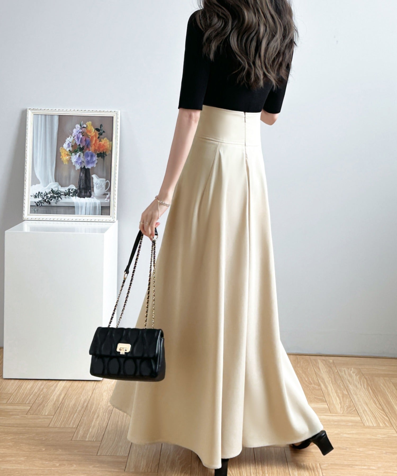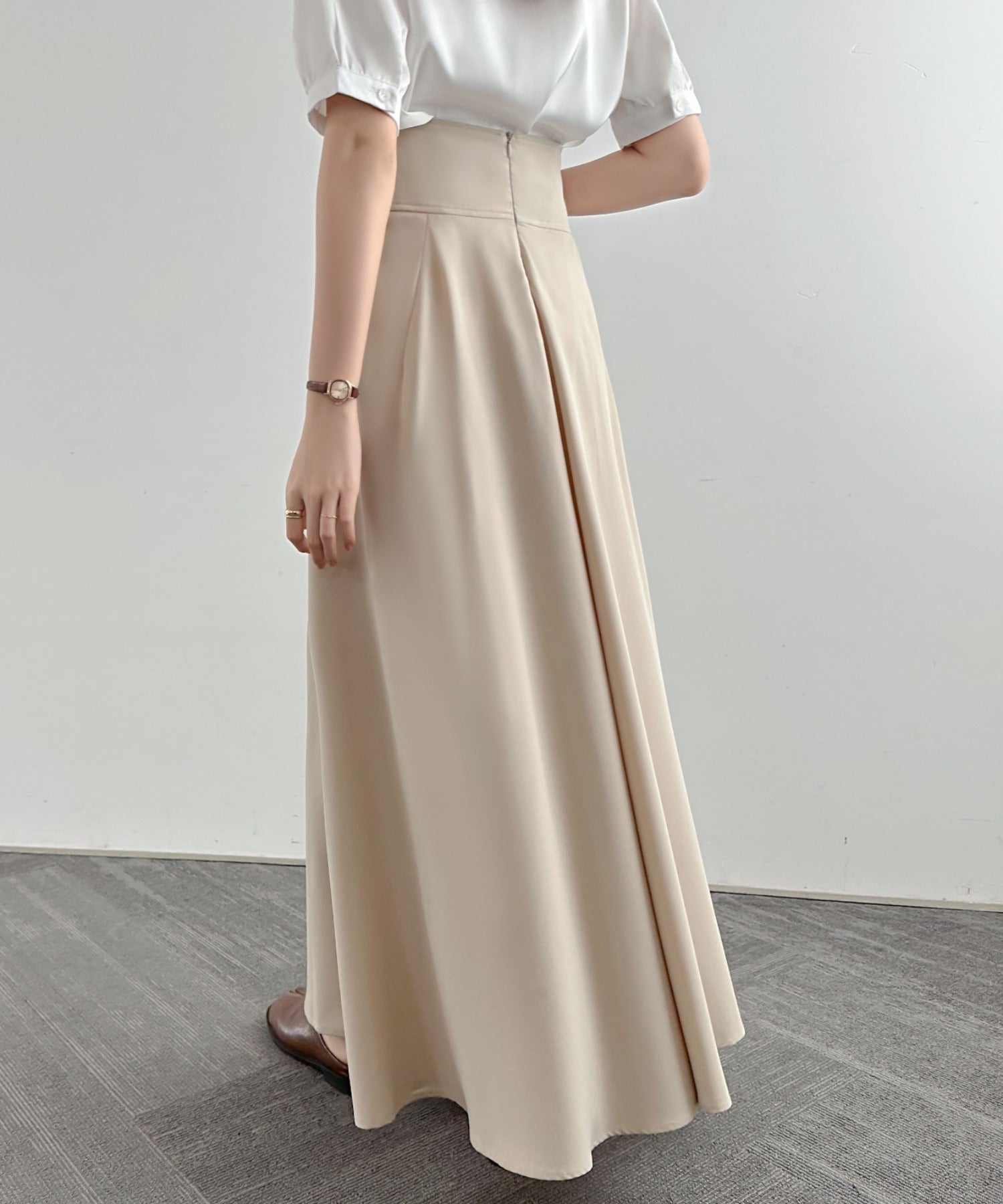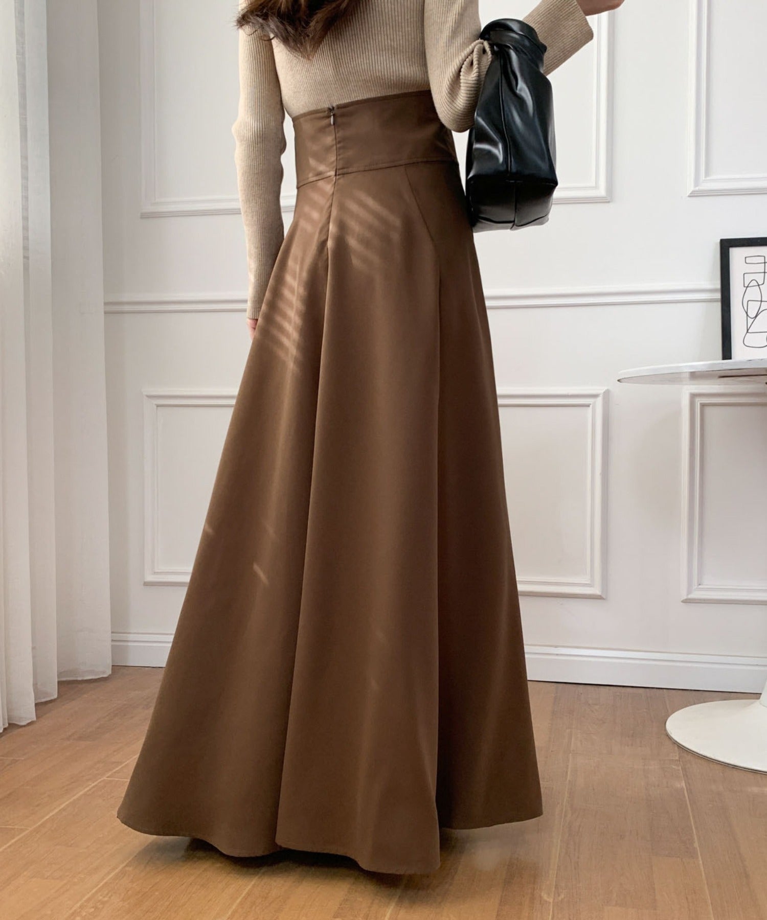 ハイウエストマキシ丈フレアロングスカート